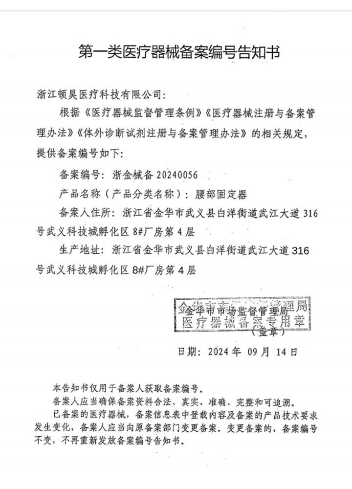 浙江頓昊醫(yī)療有限公司位于浙江溫泉之都——武義,是生產(chǎn)頸椎儀等醫(yī)療科技用品的專業(yè)廠家,其中現(xiàn)在生產(chǎn)的腰、頸椎儀成為國(guó)際國(guó)內(nèi)眾多客戶首選產(chǎn)品。在經(jīng)營(yíng)中公司實(shí)行嚴(yán)格的質(zhì)量管理,為使各類產(chǎn)品領(lǐng)先國(guó)內(nèi)外市場(chǎng) ,公司擁有先進(jìn)設(shè)備及工藝;技術(shù)力量雄厚;檢測(cè)設(shè)備齊全;質(zhì)保體系完善。產(chǎn)品出口世界各國(guó),深受國(guó)內(nèi)外客戶歡迎。 企業(yè)以質(zhì)量第一,信譽(yù)至上為經(jīng)營(yíng)原則。以務(wù)實(shí)創(chuàng)新高效向上的企業(yè)精神,在企業(yè)發(fā)展的同時(shí),竭誠(chéng)希望與海內(nèi)外客戶建立合作伙伴關(guān)系,共創(chuàng)繁榮!